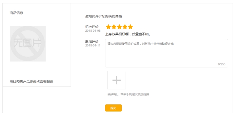 三、会员对商品进行追评:追评的时候无需再次对商品评分。