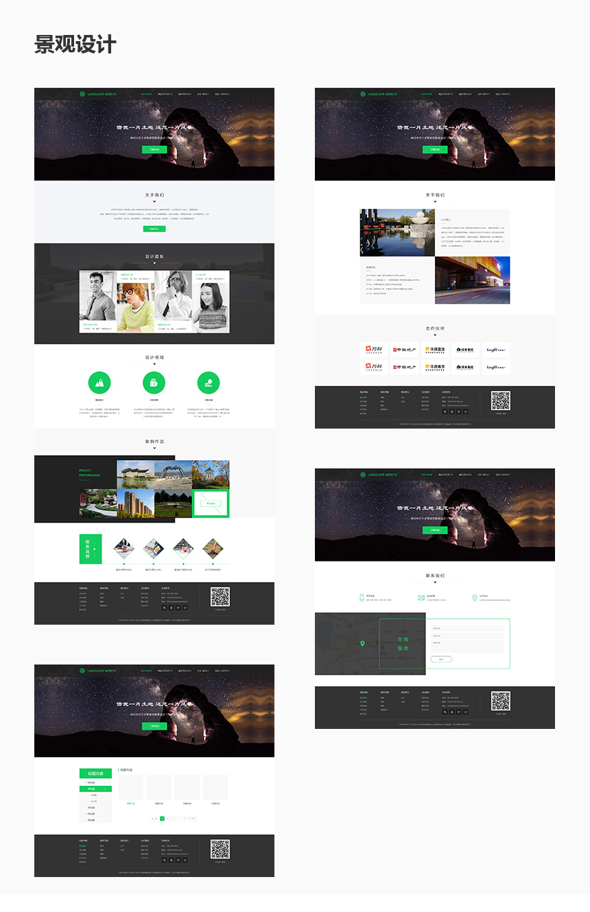 页面采用黑白与绿色相搭配相得益彰,黑白搭配可以是页面布局清晰,层次鲜明,中间点缀绿色,突出页面重点,首页内容上也将公司的信息,服务内容全部展示,可以是客户更清晰的浏览网站的信息,找到自己的需求。