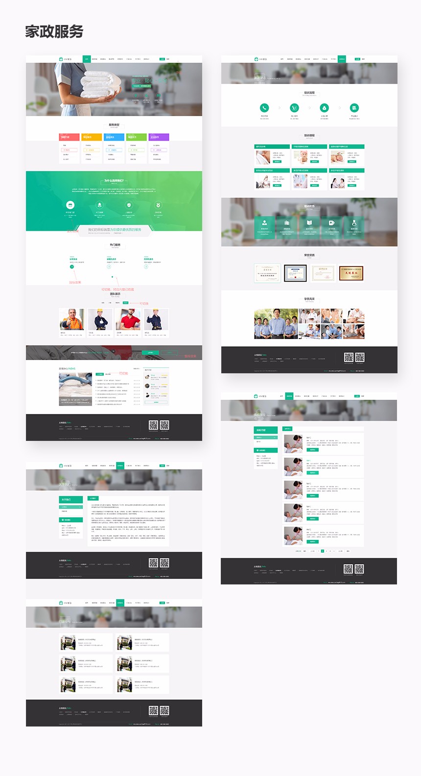 此版家政行业模板颜色使用绿色,绿色有自然、环保、和平的含义,使用户在浏览的过程中有种安全感。