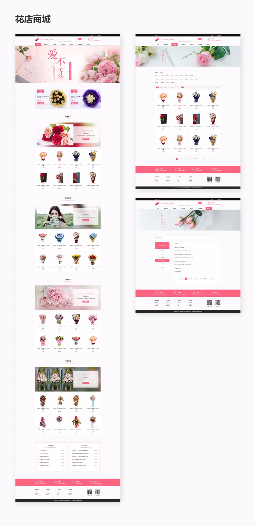 首页页面排版简单,按照鲜花用途的主要分类进行模块排版,使用户能够快速浏览到自己需要的鲜花,提高订单转化率!