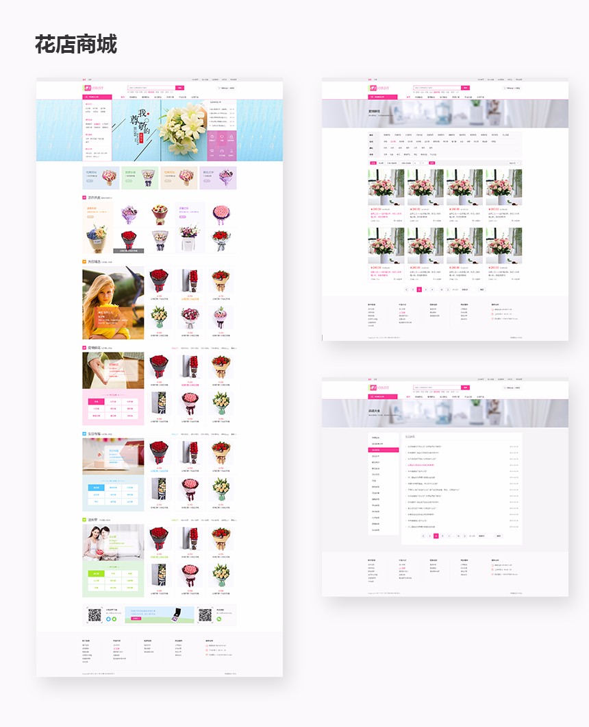 本套模板采用了粉色作为主色调,用包装鲜花的一种材质——纸张的纹理作为页面的大背景