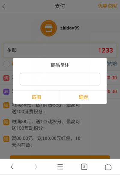 商品备注弹窗
